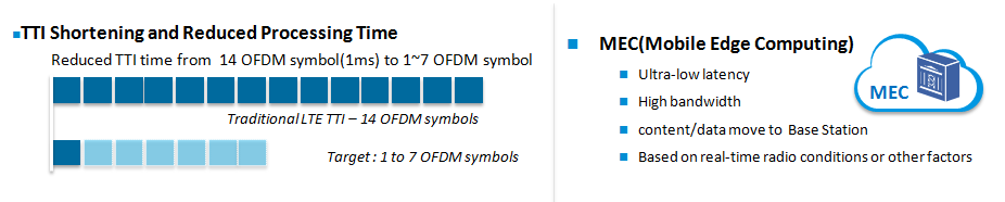 1. Short TTI: reducing the traditional LTE TTI from 14 OFDM symbols to 1-7 OFDM symbols, which can obviously reduce the processing delay