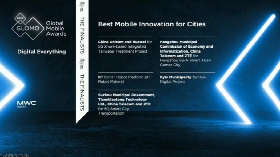 日前,有着移动通信界奥斯卡之称的GSMA全球移动大奖(Global Mobile Awards-GLOMO),公布其各奖项获奖候选短名单(每个奖项入选短名单者最多六个)。凭借5G-A技术在浙江杭州的全面赋能和应用,中国电信浙江公司和中兴通讯携手打造的“杭州5G-A智慧亚运之城”已经进入GSMA全球移动大奖——最佳移动城市创新奖(Best Mobile Innovation for Cities)候选短名单。中国电信浙江公司秉持创新发展理念,以杭州亚运会为契机向外延伸,积极探索5G-A规模应用,以千站万兆连片网络引领5G-A全场景智慧发展,以丰硕的创新成果打造5G-A杭州智慧城!