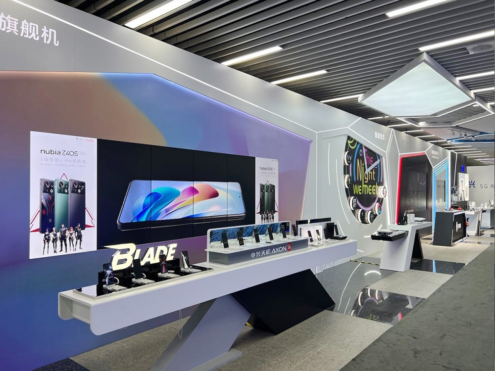 芯片墙,展示中兴通讯最前沿5nm芯片实物及各类产品中具体应用的芯片实物。自主创新五屏,展示中兴通讯从底层到应用的研发能力,操作系统、数据库、存储服务器、数通产品,安全可控,国产自主化的转变。体现公司国产替代、自主可控的相关能力。创新引领5G基站核心技术,展示中兴通讯5G基站的核心竞争力。