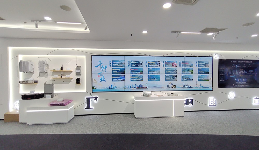 上海研发中心展厅始建于2004年,展厅的架构和内容定期迭代更新,总面积约300㎡。展厅包含“公司整体实力”,“自主创新”,”全栈智算”,“全域连接”,“数智行业”,“智慧生活”等展示主题。展厅中央依托承重柱还部署了三个小型展位,针对有个性化需求客户,支持定制化小型临展。
