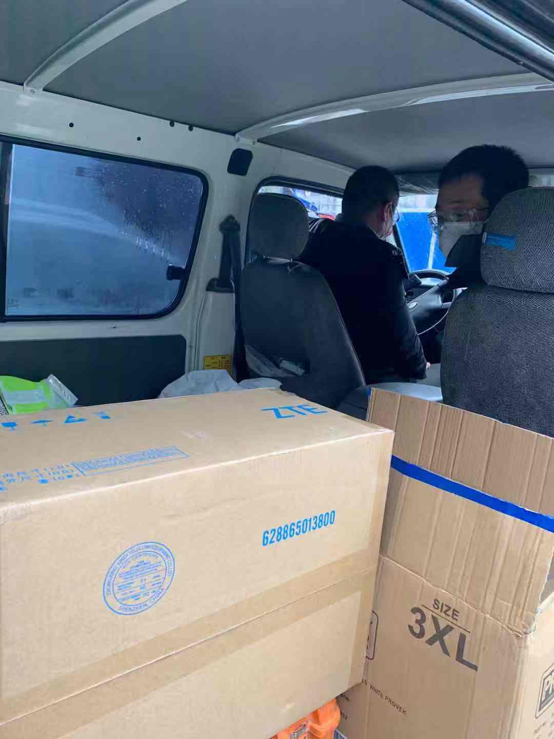 2月6日 03:30,设备配置完成,市场组在风雨交加中毅然承担起从中心配置仓库向全市重点医疗机构配送设备的任务。