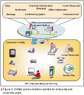 Figure 3 illustrates a unified communications solution for enterprise and corporate users.