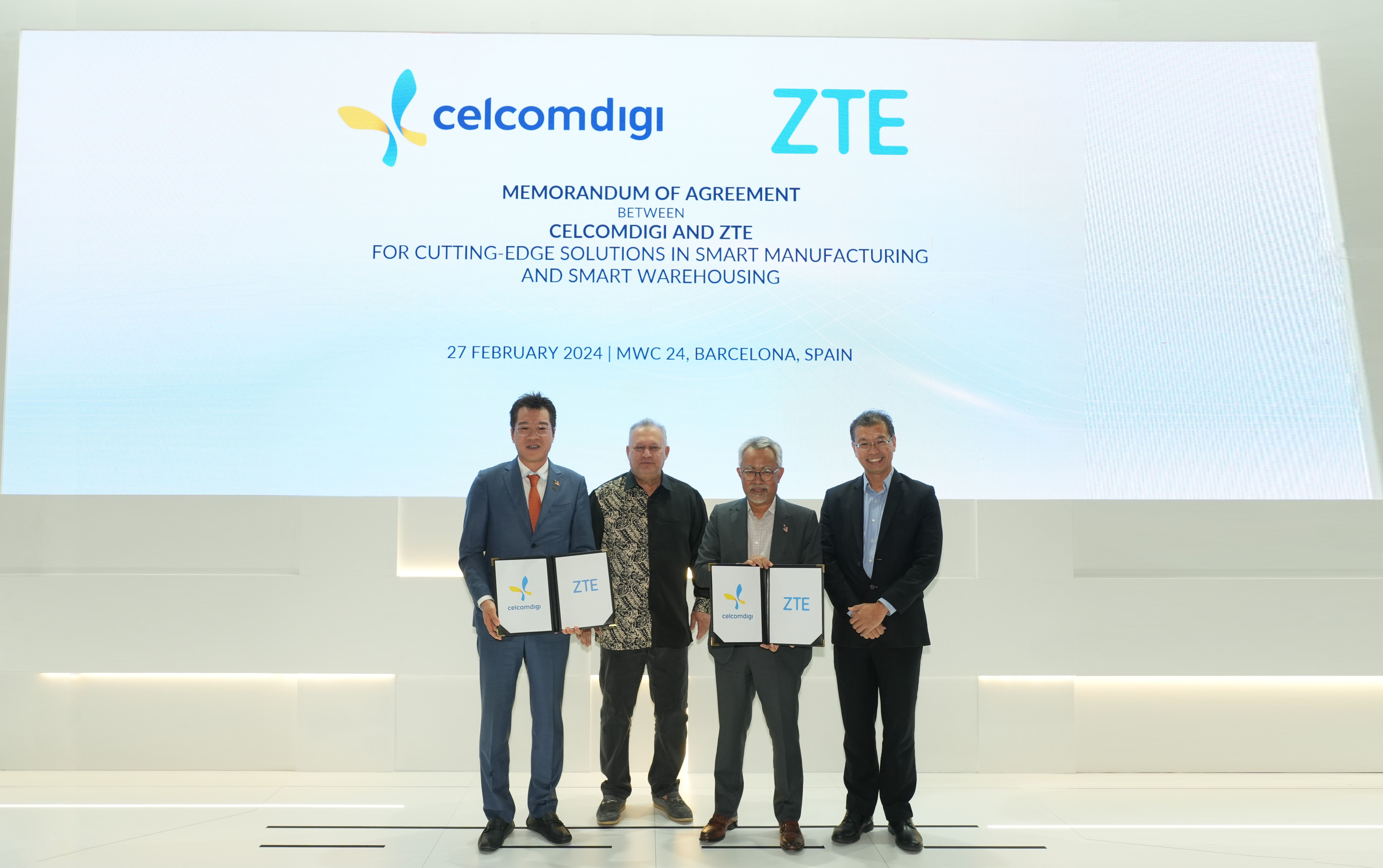 Barcelona, Spain, 29 February 2024 – ZTE Corporation (0763.HK / 000063.SZ), a global leading provider of information and communication technology solutions, and CelcomDigi Berhad (CelcomDigi), Malaysia's largest mobile network operator, recently announced a strategic partnership at MWC Barcelona 2024, to transform Malaysia's manufacturing and warehousing with smart technology and 5G powered innovative solutions.