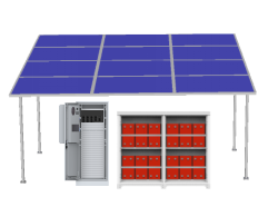 - Solar hybrid system integrated into one cabinet, including the controller, solar power units, rectifiers, and batteries.